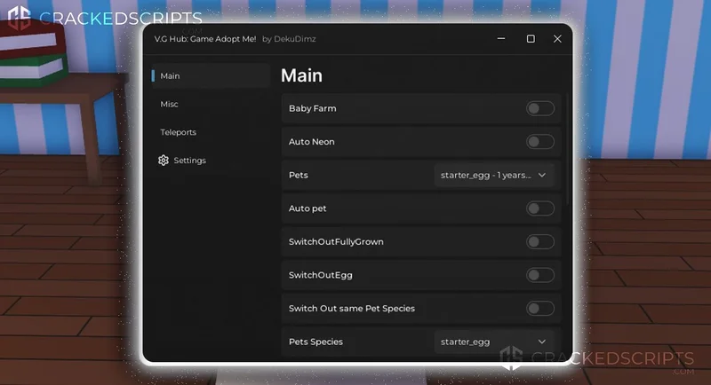 If you have been looking for the perfect script for Adop Me for a long time, then V.G Hub will be your universal solution! The script works on PC and mobile.